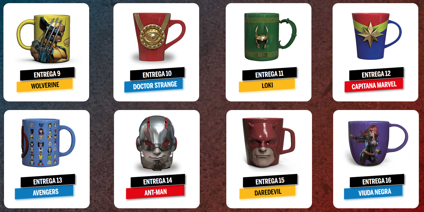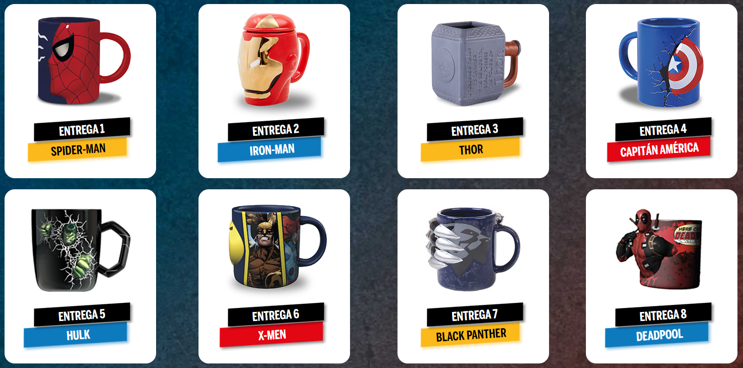 ¿Y cuál es ese contenido de Marvel Mugs, Tazas de Colección que se recibirá con estas entregas? Empecemos por las primeras 3 entregas, que además tienen un precio muy tentador: