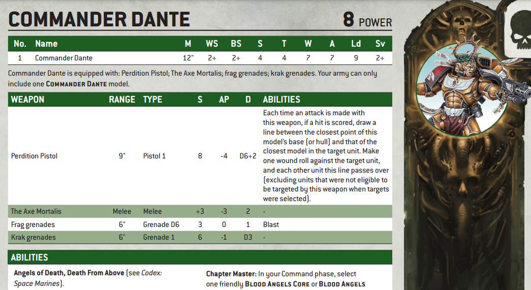 El Comandante Dante es ha cruzado el Rubicón Primaris, y regresa a la acción muy pronto en Arcas del Augurio V: El León. Hoy ya está disponible su hoja de datos para la Novena Edición de Warhammer 40k.