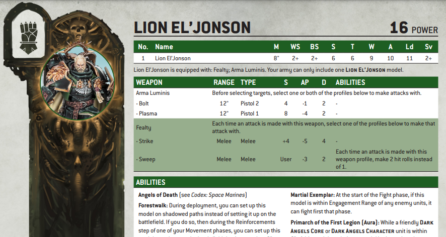 La hoja de datos de Lion el’Jonson ya está disponible en inglés: