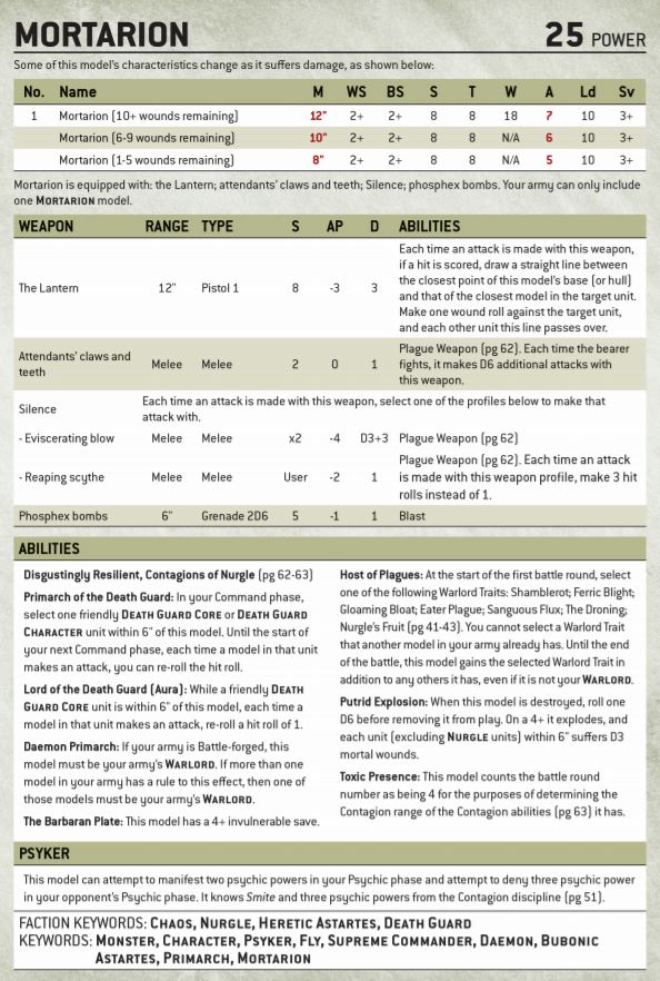- Muerte al Falso Emperador ya no está en la hoja de datos. Puede que forme parte de la todavía desconocida Contagions of Nurgle, pero por ahora no podría aplicarse.